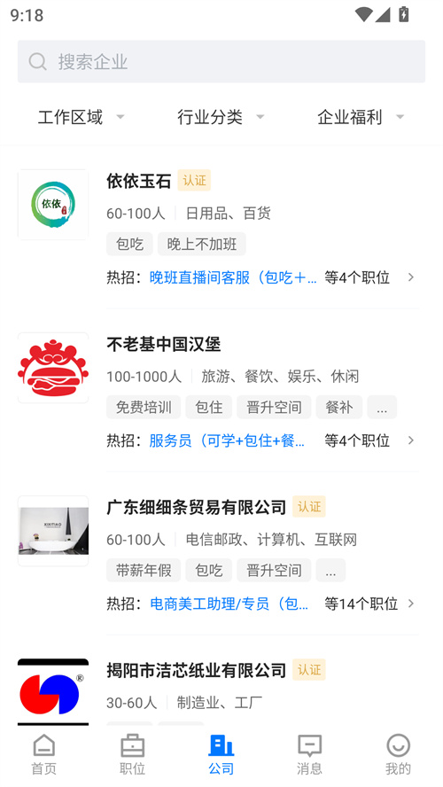 揭州直聘网隶属于上海易信网络科技有限公司,成立最早以“互联网+大数据服务”为核心的企业招聘平台之一,公司现有员工近10000余人,累计服务数亿家企业及个人用户超过3000万;作为国内首个企业人力资源服务平台——《捉妖记》品牌,“揭虎日志”、“搜狗百科”、“百度糯米”等产品。目前已经为广大商家提供免费发布招聘信息的服务,为广大商家打造一个全面而高效的一站式招聘网站。揭阳直聘网APP致力于搭建企业与消费者之间的联系,提供最便捷地沟通渠道。
