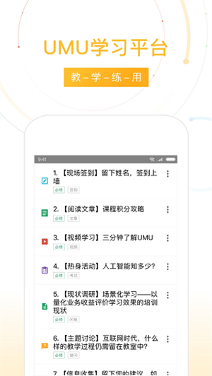 UMu互动平台app下载职业内容学习方式的手机在线教育应用是一款由网易公司倾力打造的线上学习工具,旨在为用户提供便捷高效、个性化的服务。它提供了丰富的课程资源和优质教学体验,覆盖了各个领域,帮助用户快速提升个人能力。无论你是初学者还是进阶者,都能在这里找到合适的方式进行学习。无论是想提升自己的职业技能,还是寻找志同道合的人,这个应用都能满足你的需求。此外,该应用还支持多终端同步使用,方便用户随时随地获取所需信息并继续学习。