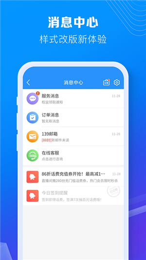 4.【我的营业厅】:包含常用应用列表分类展示以及最新订单状态更新提醒内容浏览更加流畅便利查阅相关权益礼品惊喜不断。