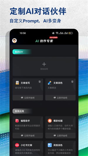 AI创作专家app是款简单方便的手机文案生成软件,通过开启我们可以轻松在我们的输入中快速进行各种文字处理和体验。想要试试本款工具的朋友不妨速速下载吧!