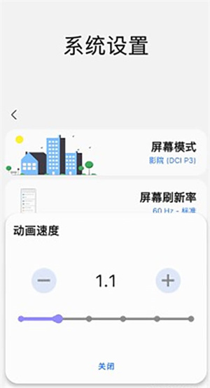 屏幕模式、系统分辨率和DPI、屏幕刷新率、动画速度(需要root权限),还可以调整屏幕和字体大小。