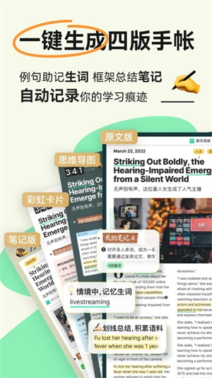 英文书籍和单词的双语对照翻译让你在阅读过程中不孤军奋战。每篇文章都有精美图片,带你感受原汁原味的美式阅读。每篇书籍都会提供原汁原貌的例句、短文及短文说明,让你在阅读过程中不知所措。