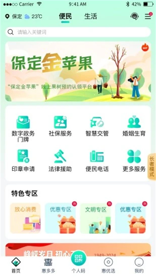 惠保定市民建立生活服务类APP,提供吃喝玩乐购优惠信息查询和在线预约挂号缴费充值水电气暖费用支付及网上办事大厅应用程序,