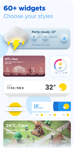 天气图标:使用3种不同的颜色和主题创建自己的个性化天气预报