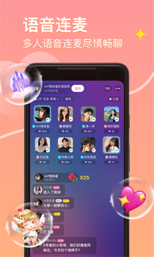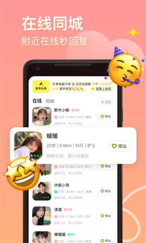 这款社交软件非常适合广大用户在手机上使用,通过这款软件你可以轻松结识到各种志同道合的朋友,让你能够在这里尽情享受社交带来的乐趣,并且这里的用户们都经过严格审核和真人认证才能在线交流哦,大家可以在平台上来快速匹配好友一起畅所欲言,还可以直接与陌生人来一场真实的语音通话约会,让聊天变得更加有趣。
