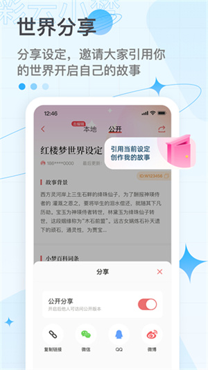 彩云小梦免费版是一个十分好用的ai续写软件,它可以为用户们提供各种小说创作功能和灵感资源。软件支持在线进行写作、故事绘画等多种内容设定服务以及人物故事生成的功能操作等等!让你在创作的过程中更加自由有趣!快来下载体验吧