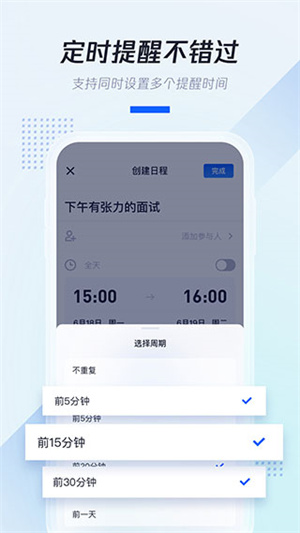 1、云日历:拥有完整的日历数据库,多种维度的重复提醒机制,便捷查看每一天的日程;