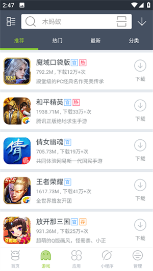 木蚂蚁手游APP会员免费领取版是专门为喜欢玩游戏的用户提供的一款软件,在软件中拥有非常多的热门游戏资源供玩家下载体验,同时还能通过软件来进行修改破解的操作。软件界面简洁,使用起来也十分简单,用户只需要点击对应的模块即可完成各种任务和挑战;而且还可以直接查看最新游戏资讯、攻略等内容