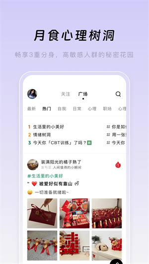 月食app最新版可以满足不同人群的需求,软件中有着海量的实用功能等你体验,用户还可以输入关键词搜索想要的信息内容。同时平台会根据你的使用习惯以及心理健康程度进行测试分析,给你推荐最适合你的课程和学习方法!