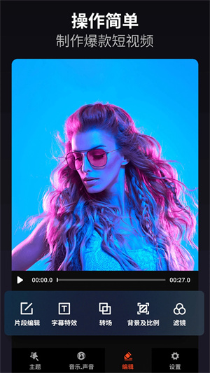 一款非常好用的视频编辑工具,在这里我们能自由的使用不同的特效来帮助你更好的去完成各种各样的拍摄效果设置!同时还能直接通过手机app轻松实现视频美化、图片滤镜调节等多种实用性的功能设定哦!快来下载体验吧!