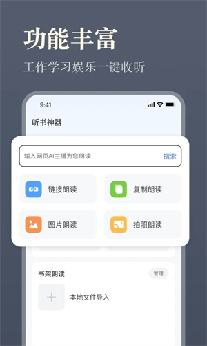 支持wifi批量下载本地图书及网络音视频播放,智能分析章节目录。