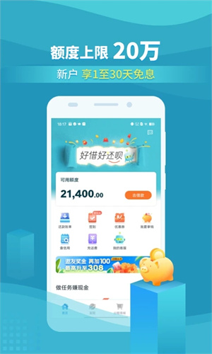 还呗最新版本是款很不错的分期消费信贷平台,用户下载之后就可以在线申请贷款额度和利率。软件的借钱模式也非常的简单方便有趣,大家可以随时随地轻松获取利息收益哦!喜欢的朋友快来西西下载体验吧
