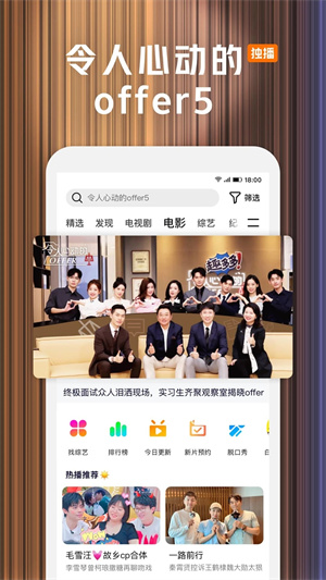 “企微”旗下专注于打造移动端视频娱乐客户端产品。目前,该应用在华为手机、平板端已实现安装包大小超过1MB,可谓满足用户的各种需求,并提供丰富多样的电影、电视剧、动漫等高清直播点播服务。同时,在腾讯视频上还有着丰富的综艺节目以及电影栏目及体育赛事频道信息任用户浏览收看。