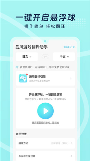 岛风游戏翻译助手永久免费版是一款非常实用的手机屏幕实时互译软件,软件中用户可以一键进行悬浮窗权限设置操作,支持多种语言在线识别转换使用体验,对软件感兴趣的话不妨点击下载试试!