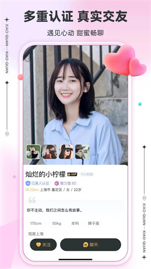 【视频认证】真人视频认证+人工审核,拒绝照骗,让你更真实地了解彼此!