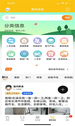 8、社交聊天模块:乐清上班族app允许乐清地区用户之间建立联系,共同探索乐清周边文化、美食、购物等方面的乐清生活圈子。