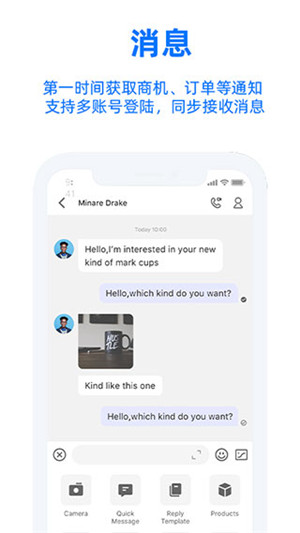 阿里卖家国际版app手机版为企业设计的国际版是阿里巴巴官方专门为外贸企业开发的一款移动在线沟通办公软件,用户可以使用这款阿里买家的海外版进行跨境交易管理和销售订单跟踪、询盘回复等操作。同时,该软件还提供了一些专业的功能和服务,包括客户商机查询与营销推广服务等等;并且能够及时更新最新的产品信息以及市场动态消息通知内容供用户查看了解!