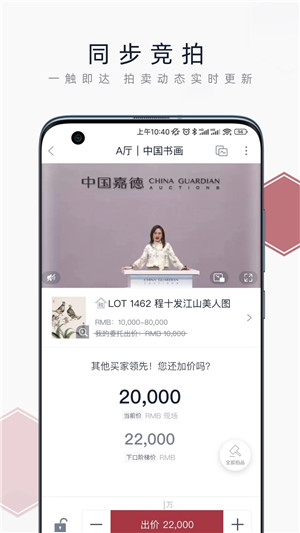 中国嘉德拍卖app是一款由上海众创信息技术有限公司打造的手机拍卖软件,这款拍卖软件可以为用户提供各种不同类型的服务功能。在中国嘉德竞拍app上也能查看各种拍卖活动、商品等!