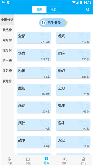 强大的检索系统能帮助大家快速找到心仪的漫画书籍或小说名称,