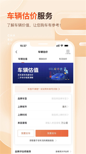 查博士app最新版是一个专业的二手车评估软件,用户在查博士上面可以根据自己车辆的真实性进行车况报告和专业分析功能。该软件拥有专业的评估师团队对车辆信息、事故案例、维保记录等多个方面进行检测并给出最准确的建议以及指导意见。通过它大家不仅可以在网上快速得到汽车的维修保养状况及事故原因处理结果,还能在线预约到线下门店来帮助你更好的管理自己的爱家,让您轻松掌握爱家的所有情况!