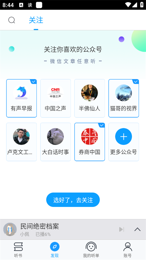9、「云端同步」,只要登录账号,就可以无缝浏览自己收听过的各类图书和服务信息。