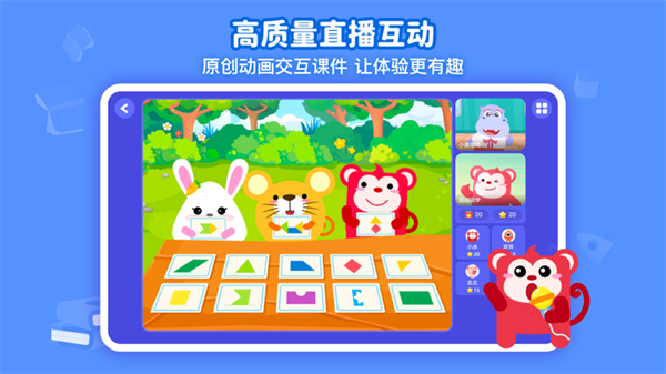 火花思维课堂app学生端为儿童提供丰富的课程内容,包括数学逻辑思维、英语逻辑思维等各种思维知识点。其中还有一些有趣的学习方式可以帮助孩子们快速理解和掌握。同时还提供了多种互动形式供孩子进行选择!