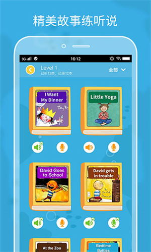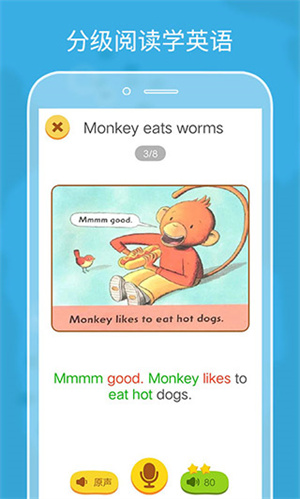 【分级阅读】根据年龄推荐适合的英语学习内容,让孩子在阅读中自主思考,提高朗读技能和学习兴趣;针对不同的英语水平,有专门的学习报告提供科学的学习指导,实现个性化教学。