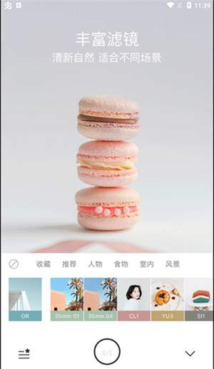 用户可以根据自己的喜好自由切换滤镜风格,实现个性化的美食摄影作品;