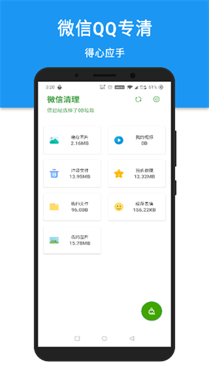 它能帮助您轻松地将微信、qq中的聊天记录等内容自动分类管理,包括短信、通话记录、应用安装包等多个方面;同时还可以智能识别一些常用的应用程序,例如系统设置、应用卸载、应用备份等实用性需求。此外,它还提供了批量重启手机、清理无效安装包的功能,让您能够一次性的搞定手机存储卡和多余数据。