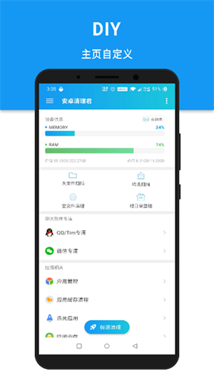 一键释放更多可用空间,有效解决手机卡慢问题;