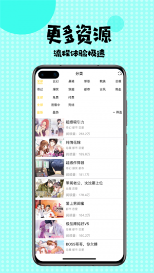 1、超全种类:国漫、美漫、完结的、热血的、恋爱的漫画统统搜罗,分类齐全,让你追漫0等待;