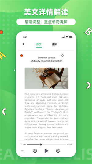 4、海量题库:覆盖四六级、新概念、雅思托福等多种备考类型,模拟实战训练,助你快速提升听说读写综合能力。