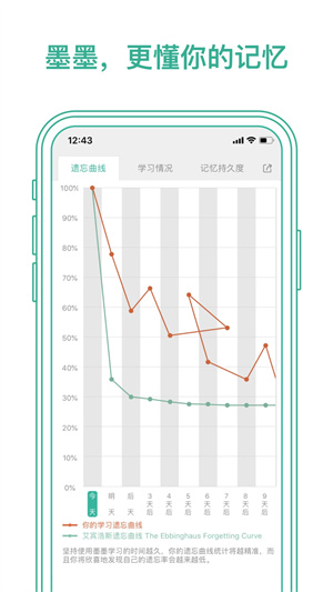 以艾宾浩斯遗忘曲线和个人复习曲线结合在一起,让您高效的完成每一个知识点的复习,轻松应对考试;