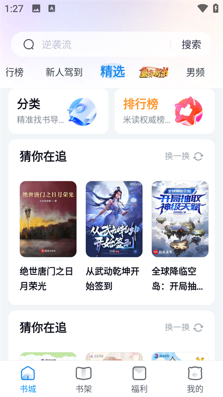 1、在本站下载好app后点击进入,首页会看到超多的精选频道可以看最新更新的小说了;