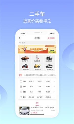 买卖二手车就上这里,百万商家直供,海量商品任你选,让买卖双方随时随地畅聊闲置情况,享受便携式的二手车生活方式。
