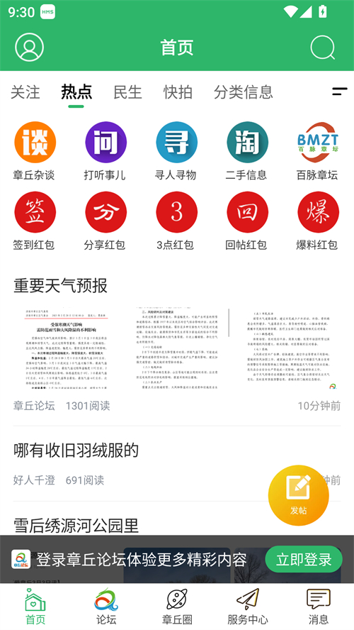 章垂网客户端主要分为章袍头条、文旅社、章驴乐拍以及章陵号、章子商城、社区圈、个人中心五个模块,其中章子里的最新新闻与评论区可以直接参与互动交流;在帖子的右下角有着“发布”图标可用于快速发表自己的观点及图片视频到朋友圈进行展示或者收藏相关话题讨论;在论坛里,章笛有论坛里的全部板块:本地论坛、论坛、社区、论坛、相亲交朋友、章棠要闻等众多分类栏目供用户选择使用;在我的页面中,我们还提供了消息通知提醒设置的功能,如账号被锁定、登录密码修改等都可以通过该选项来完成操作了;