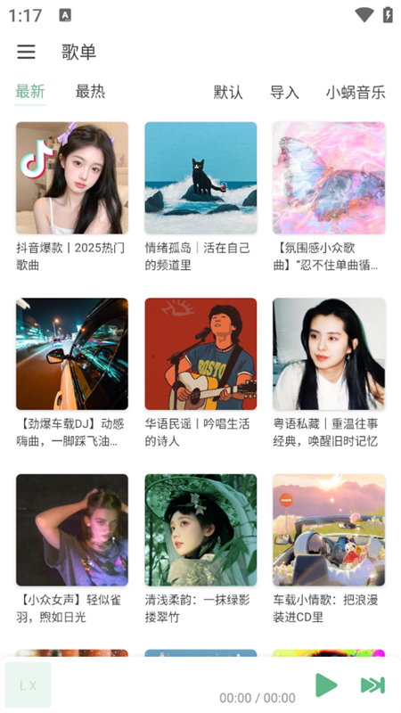 8、「洛雨音乐」app内置多款酷我的音乐源接口,几乎可以找到我们平时听不到的网易云音乐、QQ音乐、百度音乐、咪咕音乐、搜狐音乐、360音乐、豆瓣音乐等主流音乐平台的歌单导入进去后就可在这里实现同步听歌(目前只有此功能)的获取,并且支持自定义链接解析及歌单解析。