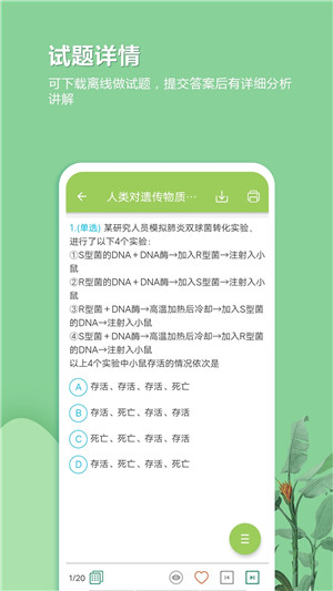 生物通高考生物通app试听吧是一款十分不错的生物学习类软件,这款生物通考能过吗?在实验中考真题试听吧app中用户可以直接通过模拟考试来进行知识巩固和提高成绩,喜欢的小伙伴赶紧下载体验一下~