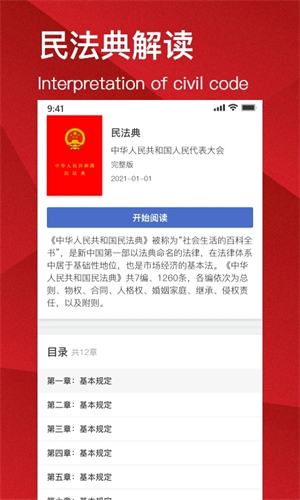 1、民法典解读APP是国家司法考试中心推出的一款综合类法律法规数据库和民意服务平台。它收录了全国近5万篇法律常识文章,涵盖刑事辩护会谈,民事诉讼、知识产权等多领域。