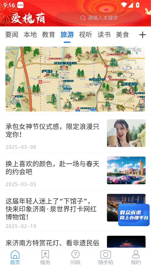 爱枣葵本地人可以在这里阅读到最新的新闻资讯,同时还能在线办理很多政务相关的业务。线上的界面非常简单,每天都有各种最新更新的内容可以看,你可以根据自己的需求选择分类进行查看对应的信息详情了。还可以直接收藏一些感兴趣的文章或者专题文章哦,欢迎有需要的朋友下载使用!