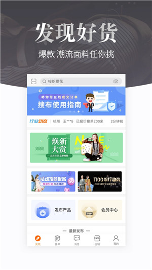 搜布app是全球首款纺织行业移动电商服务软件,软件内拥有超多优质的商品资源提供给你进行选择。各种各样的商品分类明确方便用户查找和购买!并且平台还有着专业人员在线为你解答疑惑哟!欢迎大家下载使用哦