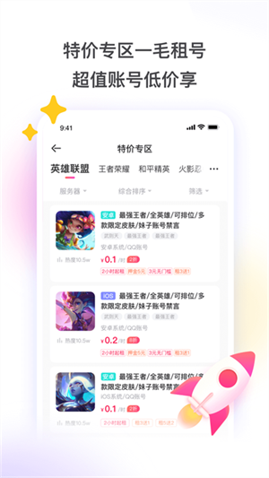 租号玩极速受受欢迎的游戏账号买卖平台app简介: