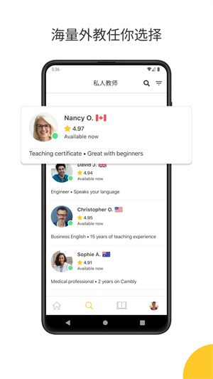 cambly口袋英文app是全球英语在线学习平台,平台拥有丰富优质的英语课程资源,可以帮助用户更好的轻松学英语。需要的朋友欢迎前来下载使用。