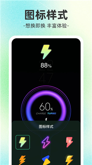 2、提供多种不同颜色的充电主题供您选择,使充电过程更加丰富多彩。