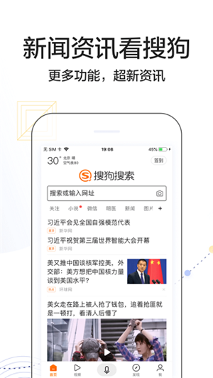 搜狗搜索根据用户浏览的历史记录分析用户的兴趣爱好推送个性化的热点话题供用户选择关注感兴趣的相关领域动态及时掌握最新的新闻事件消息通知哦;
