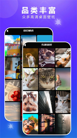 如风景照、动物照、明星写真、卡通动漫、影视人物等众多类型的照片都可以在这里找到满意的作品或者是更换一张壁纸非常便捷高效;