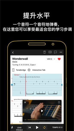 2,支持自定义吉他播放列表,让您更方便地找到自己喜爱的曲目。