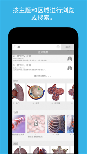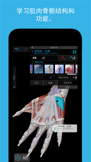 在医疗学习下去图谱破解版是一款专业的手机医学解剖软件,这款软件提供了丰富的医学人体知识和详细的三维图像内容,包括了肌肉、骨骼、泌尿系统和呼吸系统等各个部位的3D模型。用户可以通过软件轻松地从海量数据中找到自己需要的知识点进行学习。此外软件还提供了丰富的健康资讯供用户阅读了解,帮助自己更好地掌握相关疾病和症状。