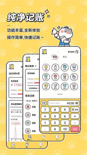 喵猫记账免费内购版是一款非常有趣的手机生活账本记录软件,软件界面设计简单清新,用户只需输入金额就能快速进行计算消费。使用该软件不仅能够帮助你养成记账好习惯,还可以轻松查看自己的收支情况,让你更好的了解自己的收入和支出状况等详细信息内容!