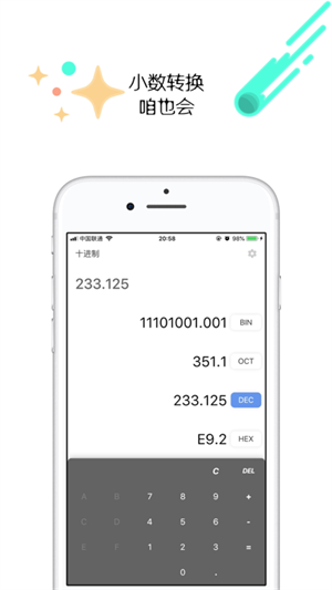 进制转换器APP集成数值计算、科学计算、时间计算、面积转换、温度计、压力转换、速度计、力图转换、量角器、功率计等,非常实用。